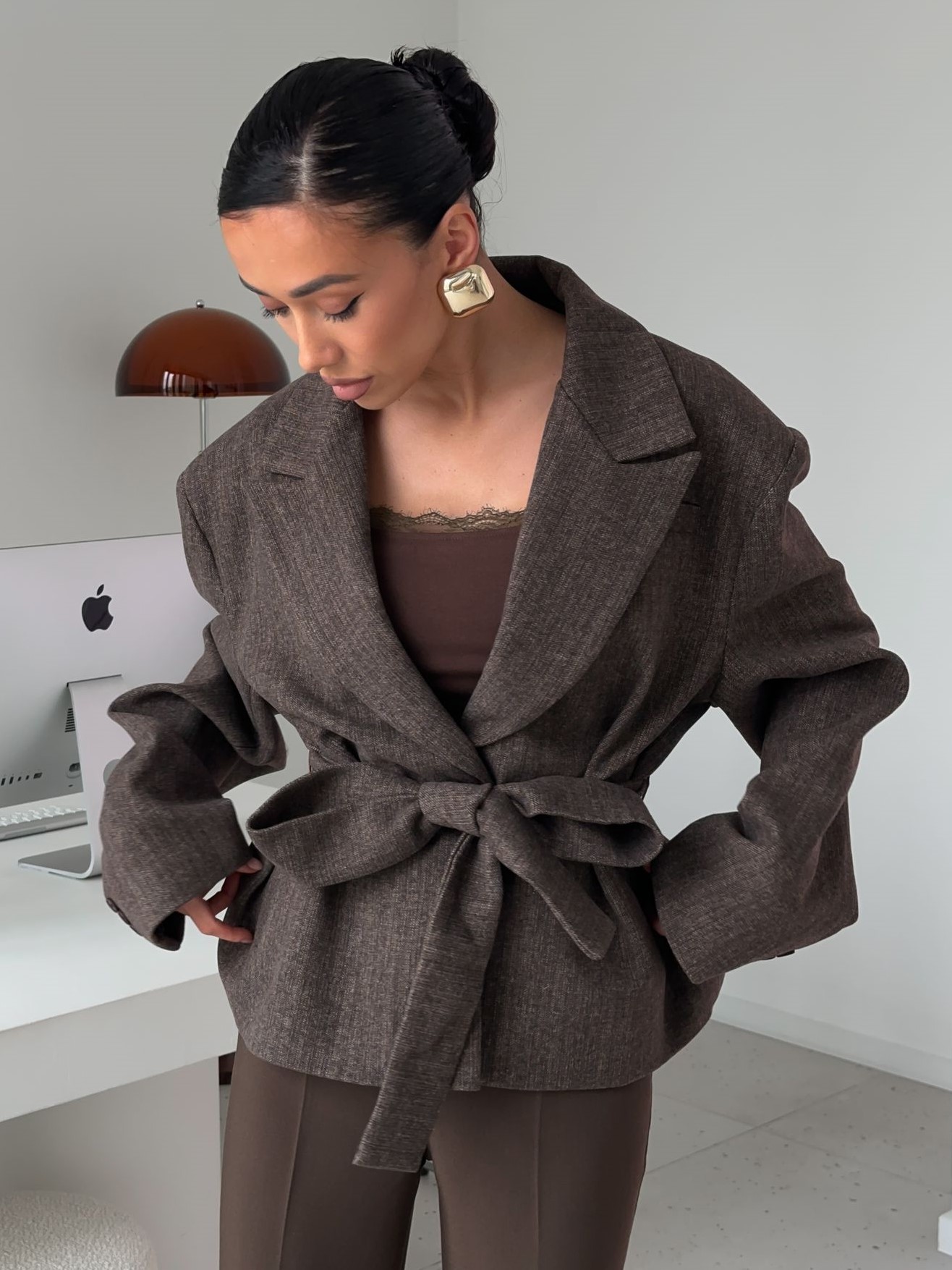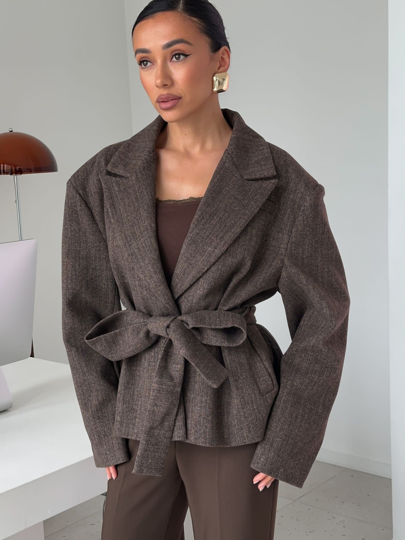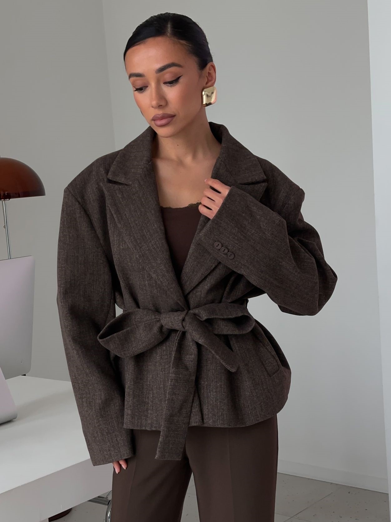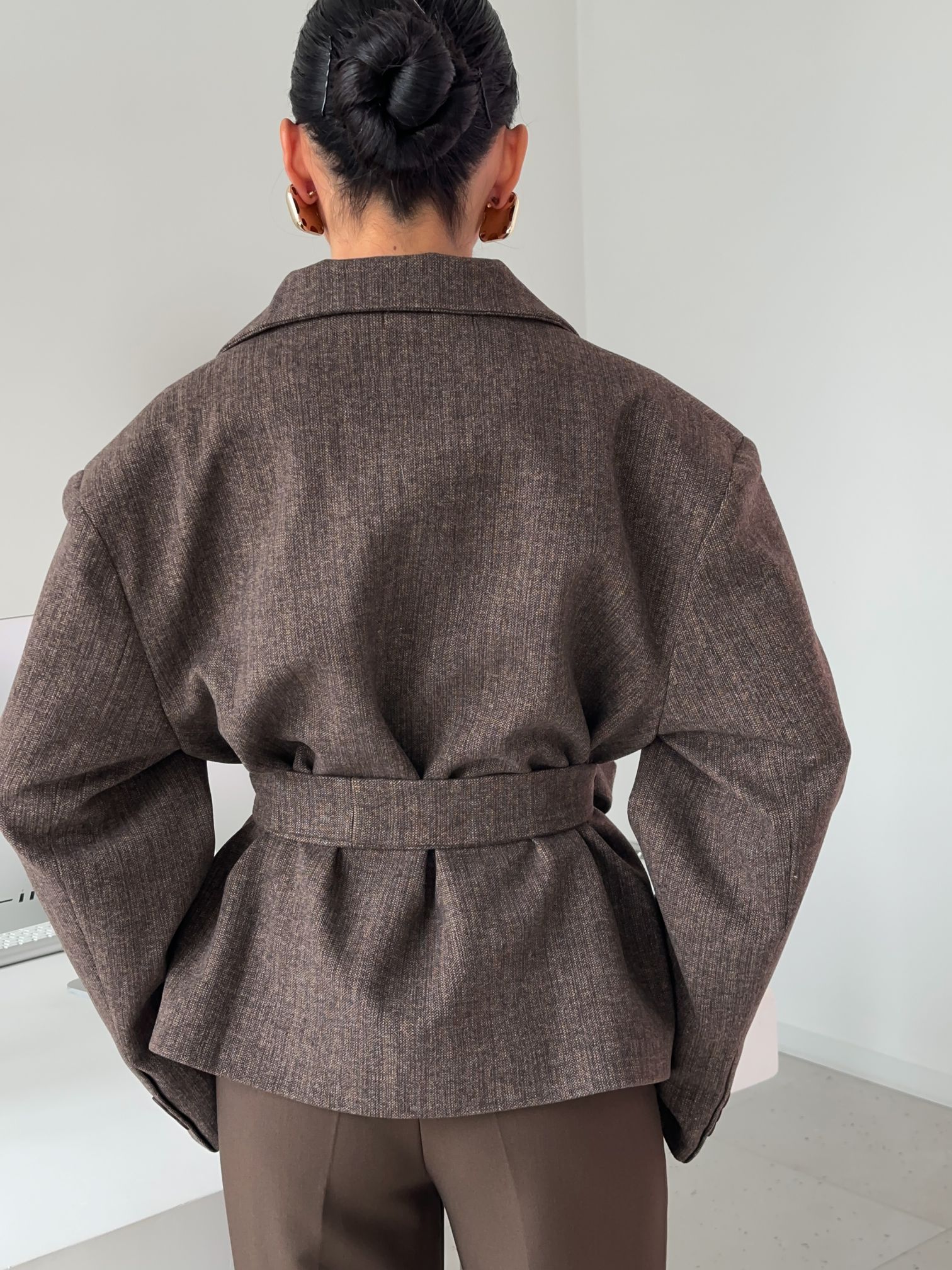 Страна: КитайСостав: 65% вискоза 25% шерсть 10% полиэстерУход: ручная стирка при t° не более 30°Параметры модели: 83 / 65 / 89 , рост 170 (на модели размер S)