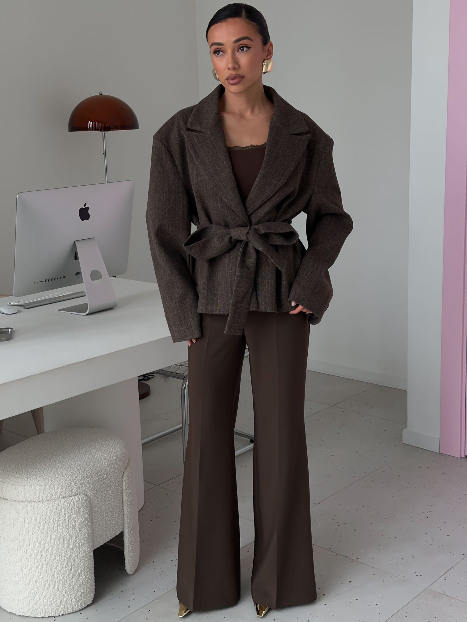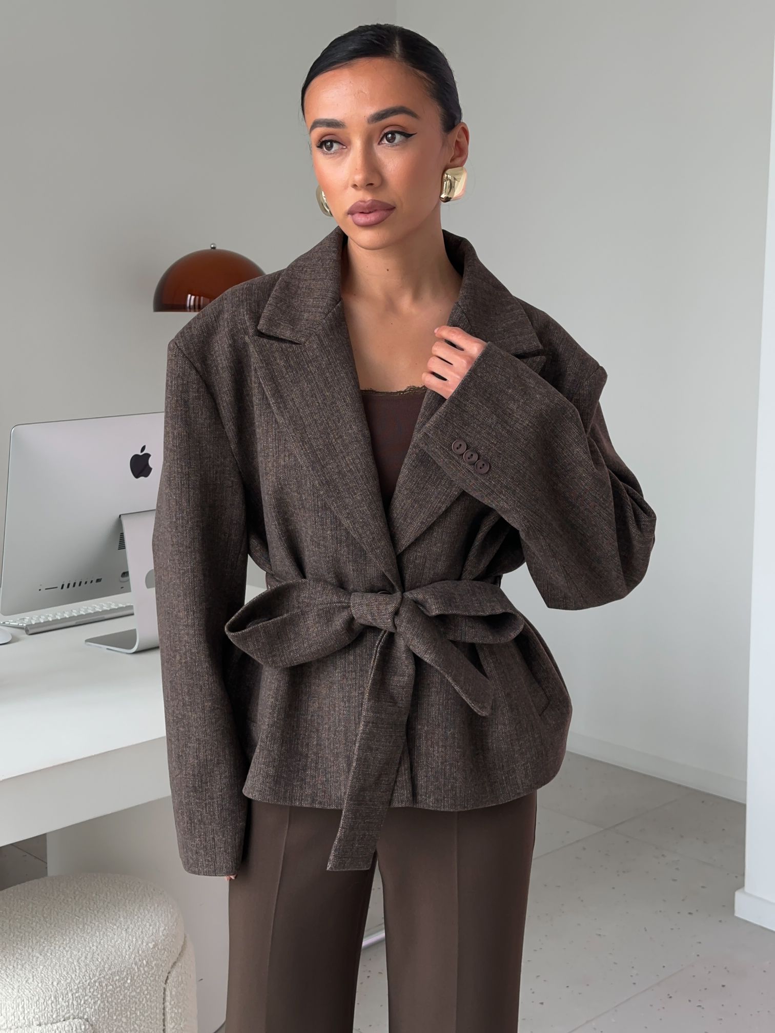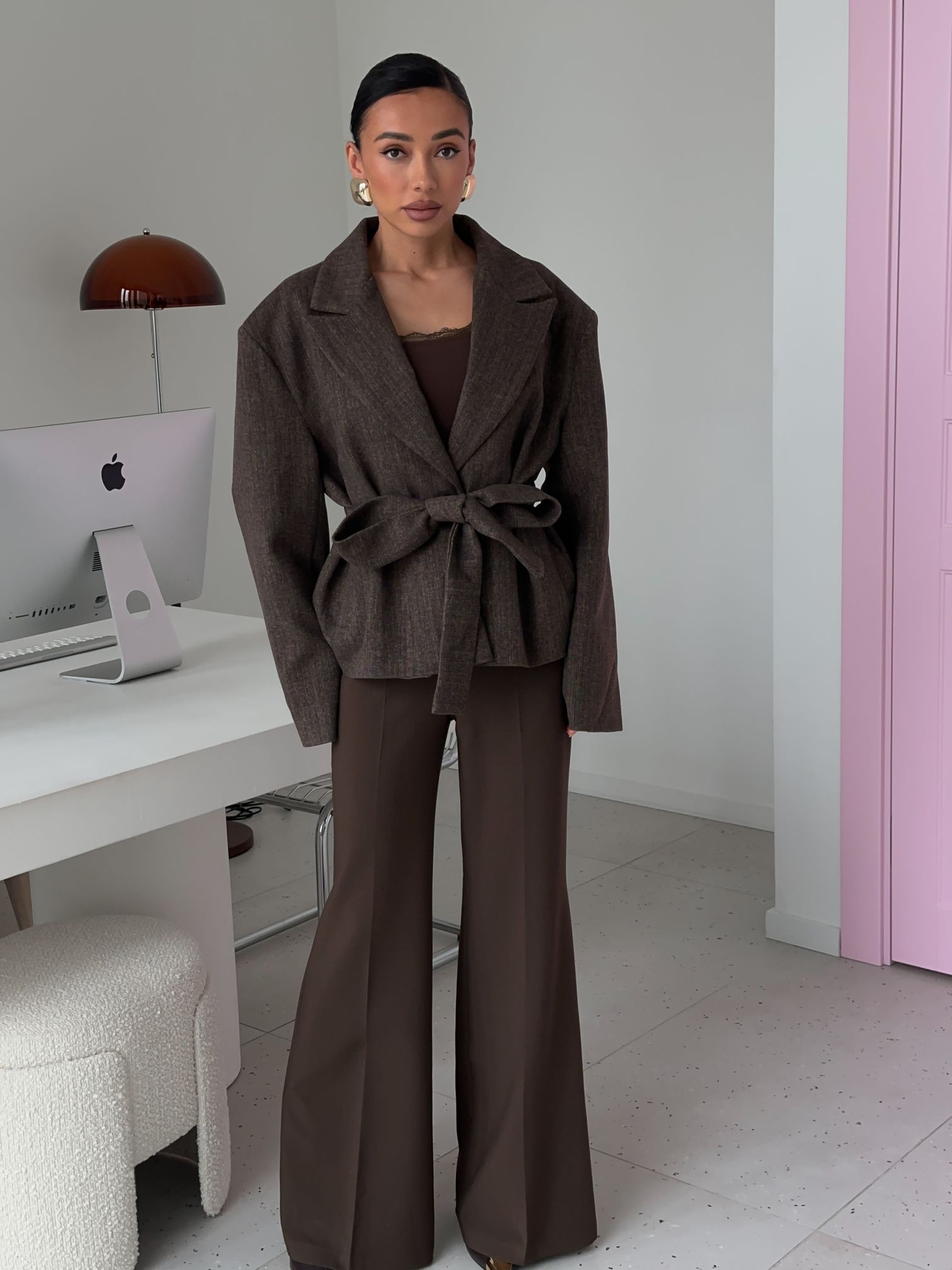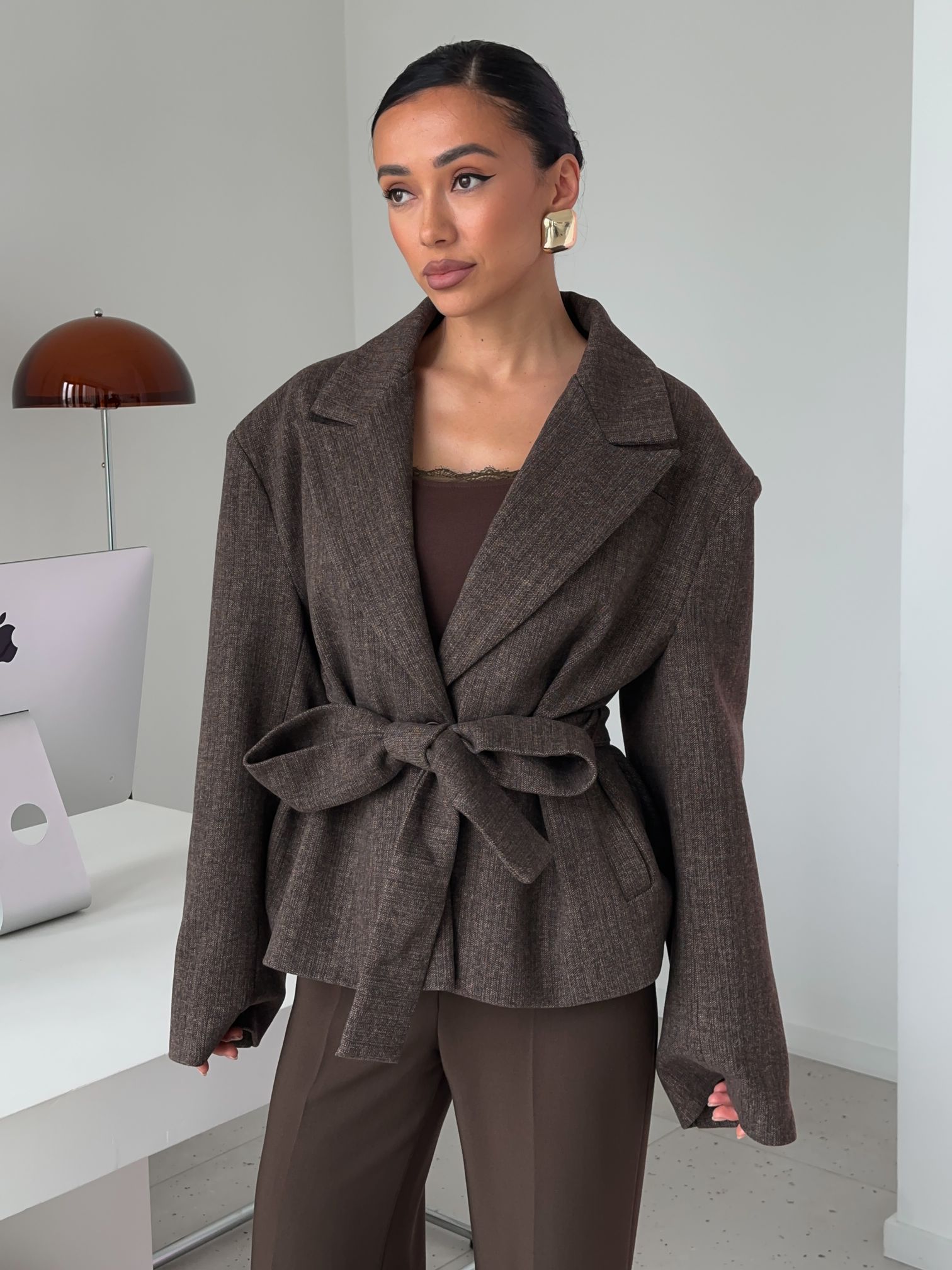 Страна: КитайСостав: 65% вискоза 25% шерсть 10% полиэстерУход: ручная стирка при t° не более 30°Параметры модели: 83 / 65 / 89 , рост 170 (на модели размер S)