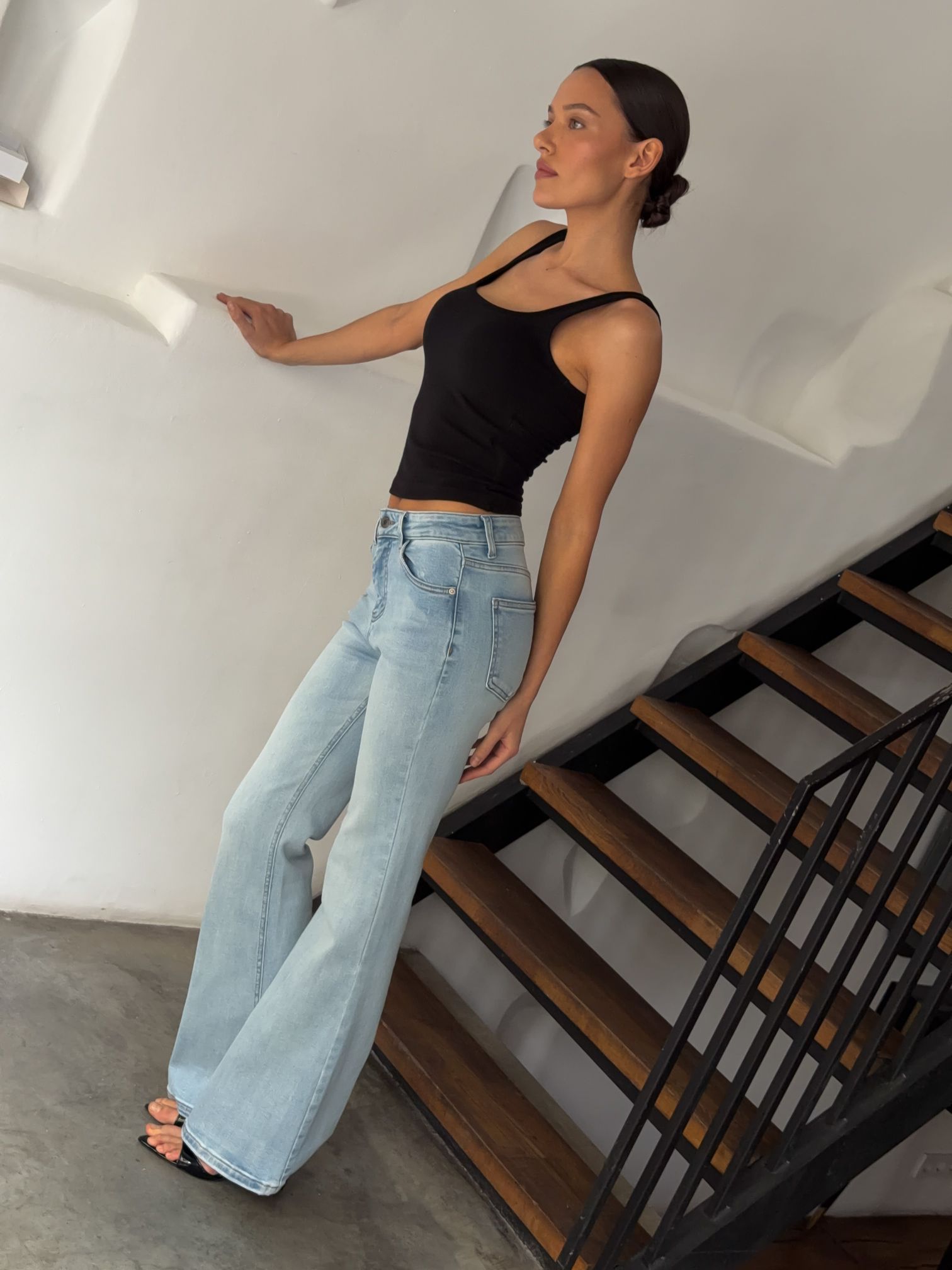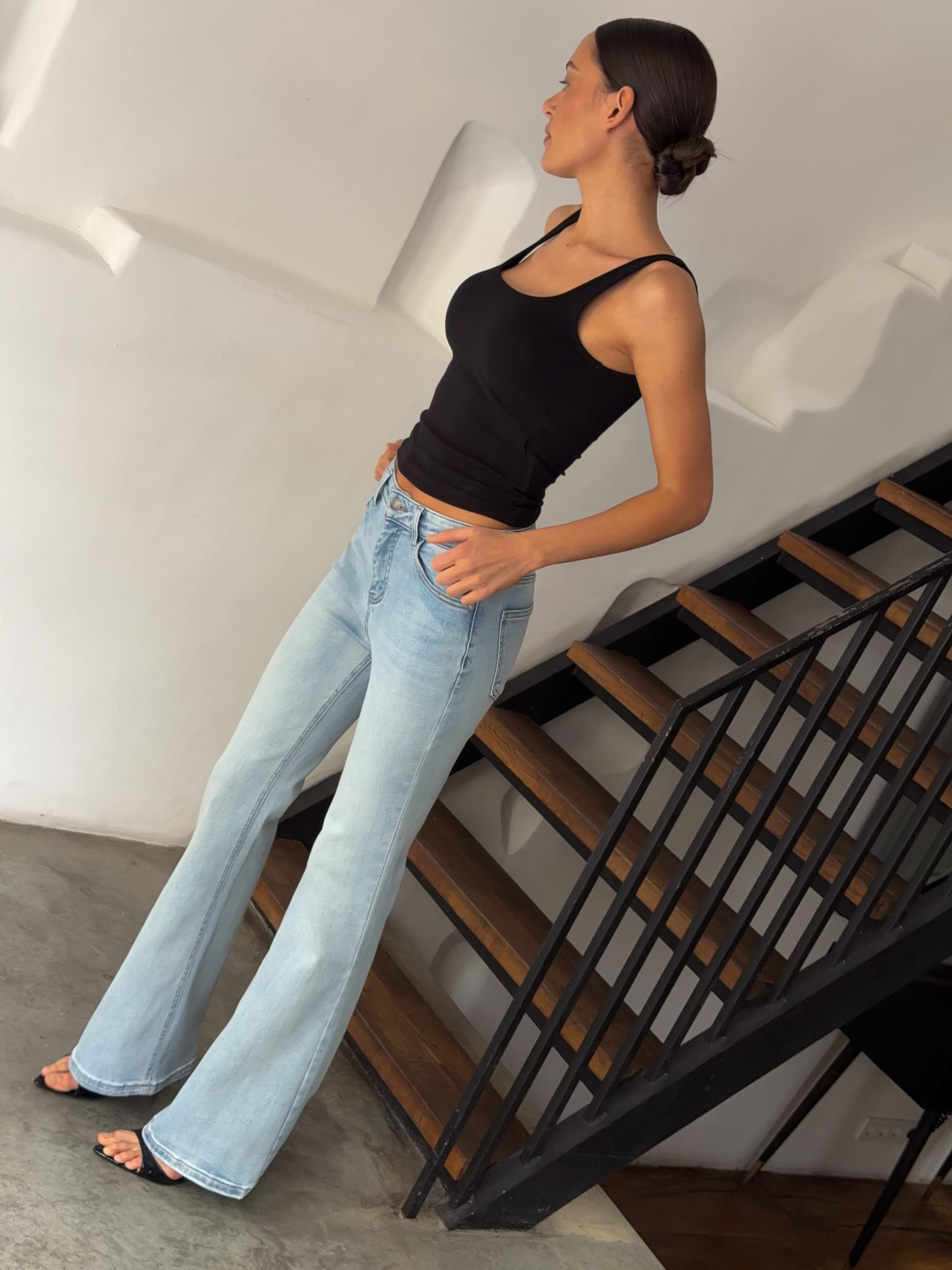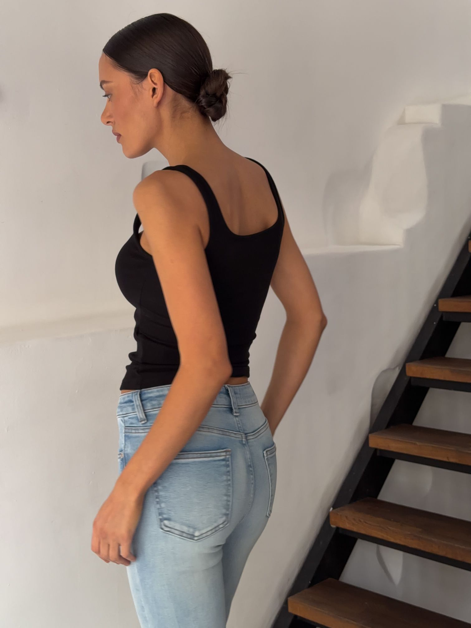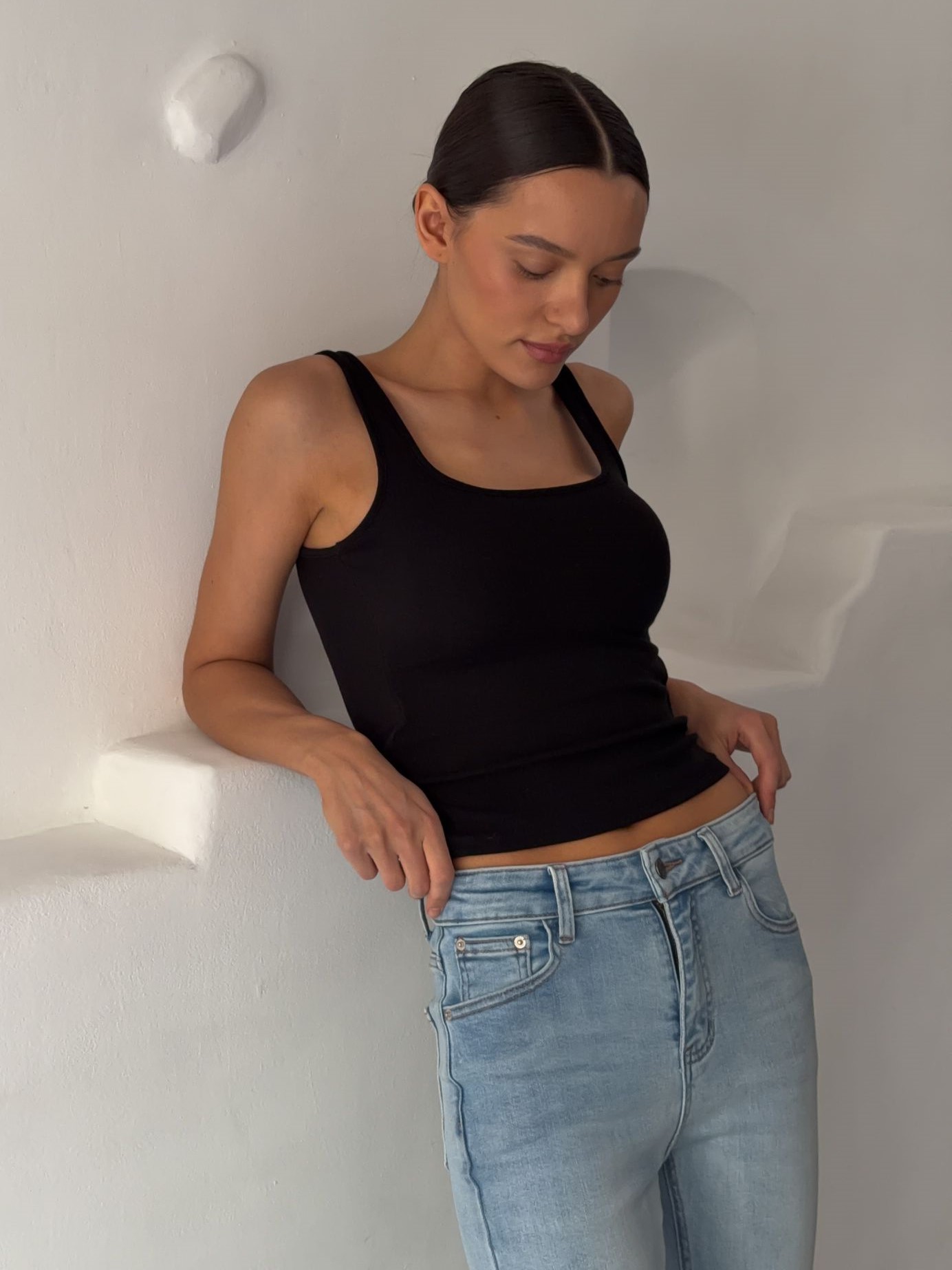Страна: КитайСостав: 97% хлопок 3% эластанУход: ручная стирка при t° не более 30°Параметры модели: 83 / 63 / 90 , рост 172 (на модели размер 34)