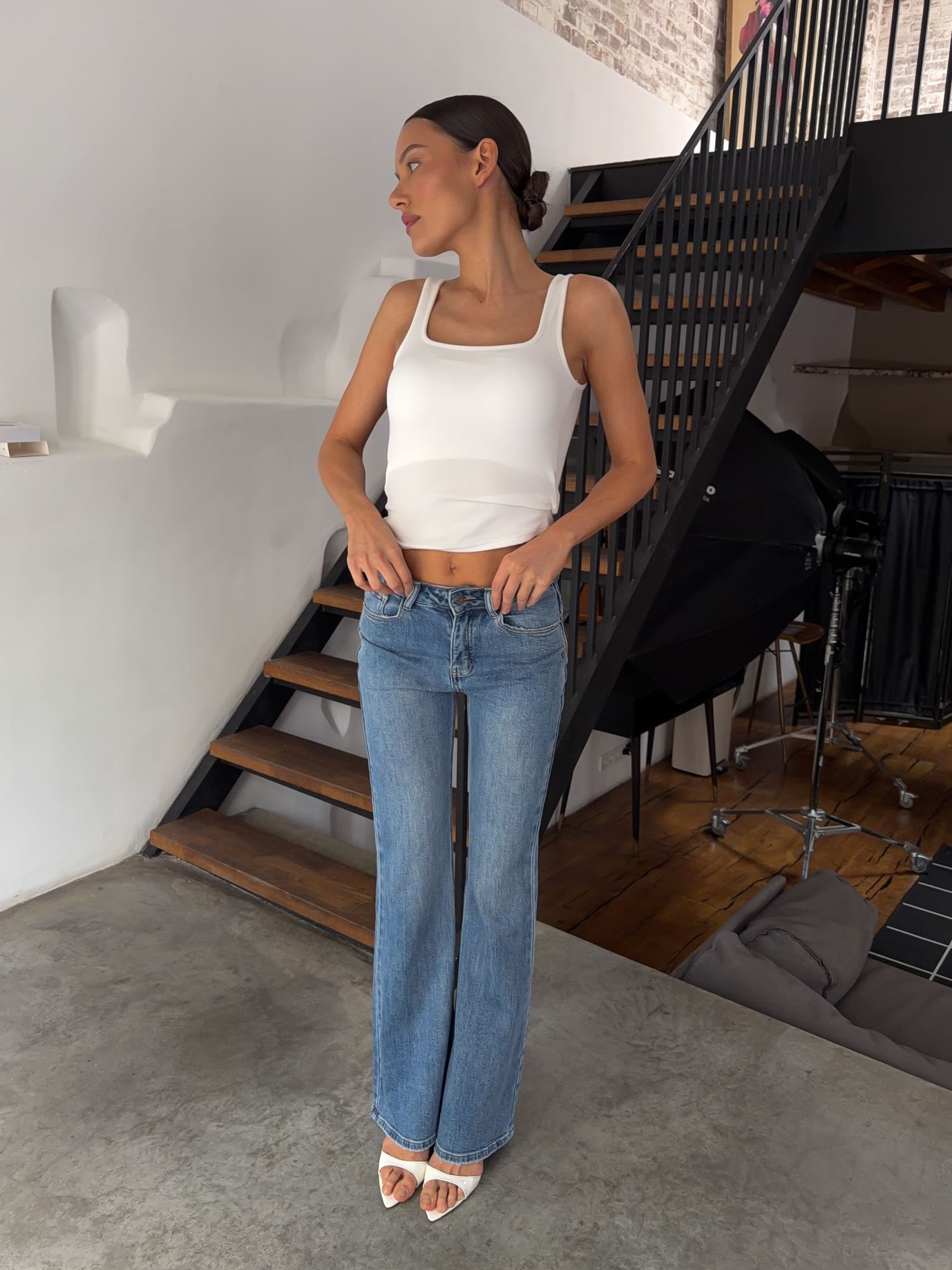 Страна: КитайСостав: 97% хлопок 3% эластанУход: ручная стирка при t° не более 30°Параметры модели: 83 / 63 / 90 , рост 172 (на модели размер 32)