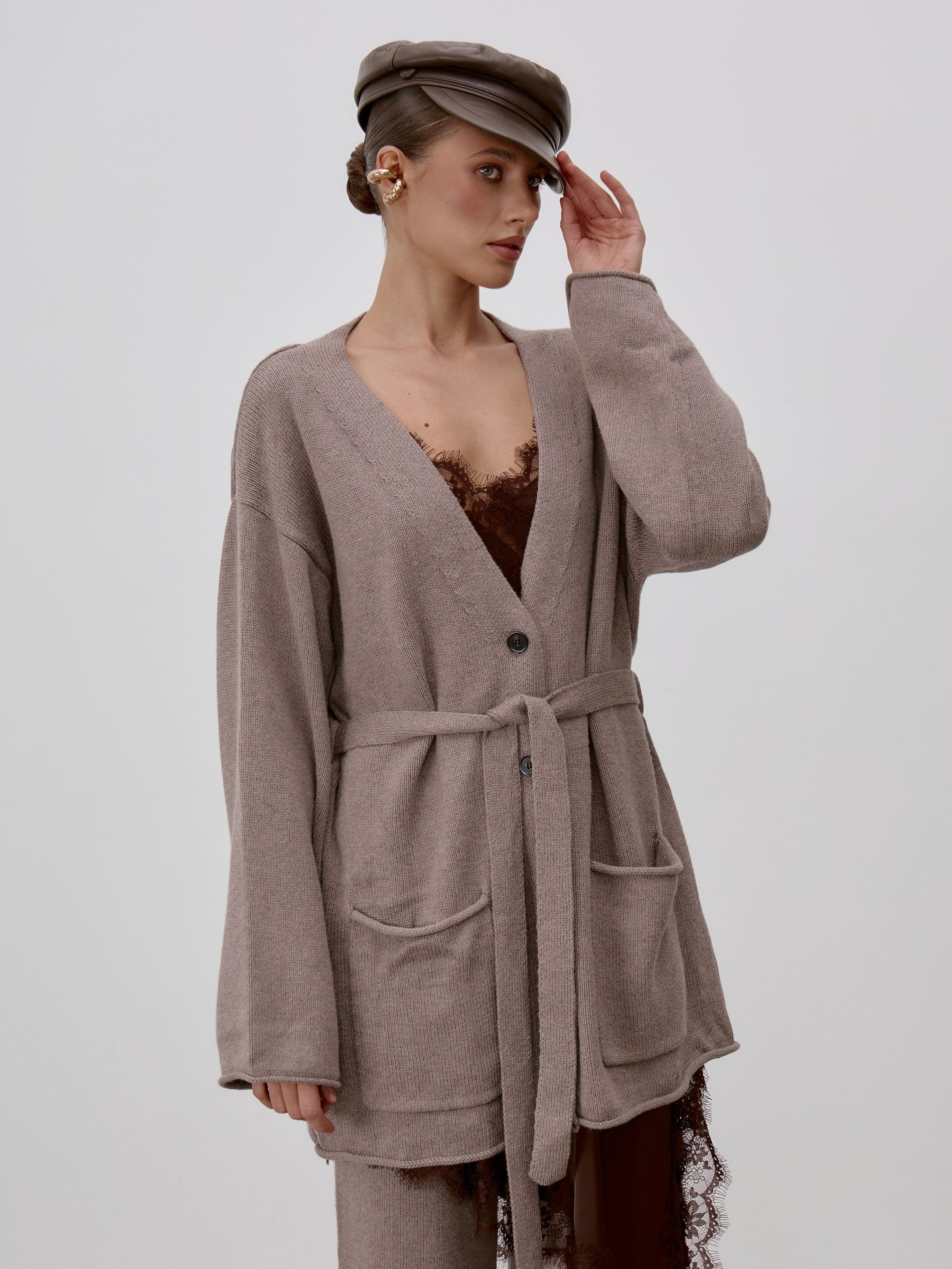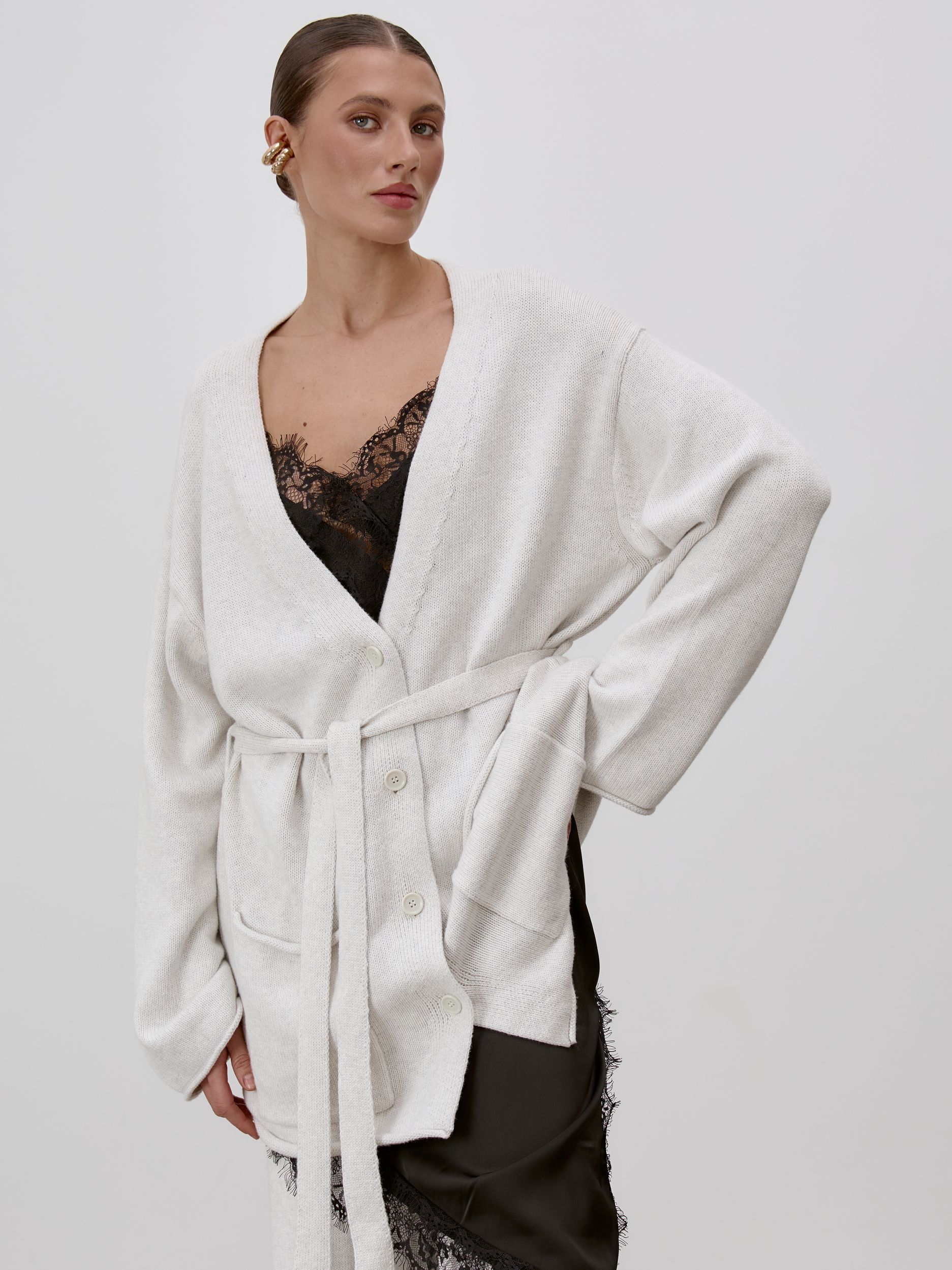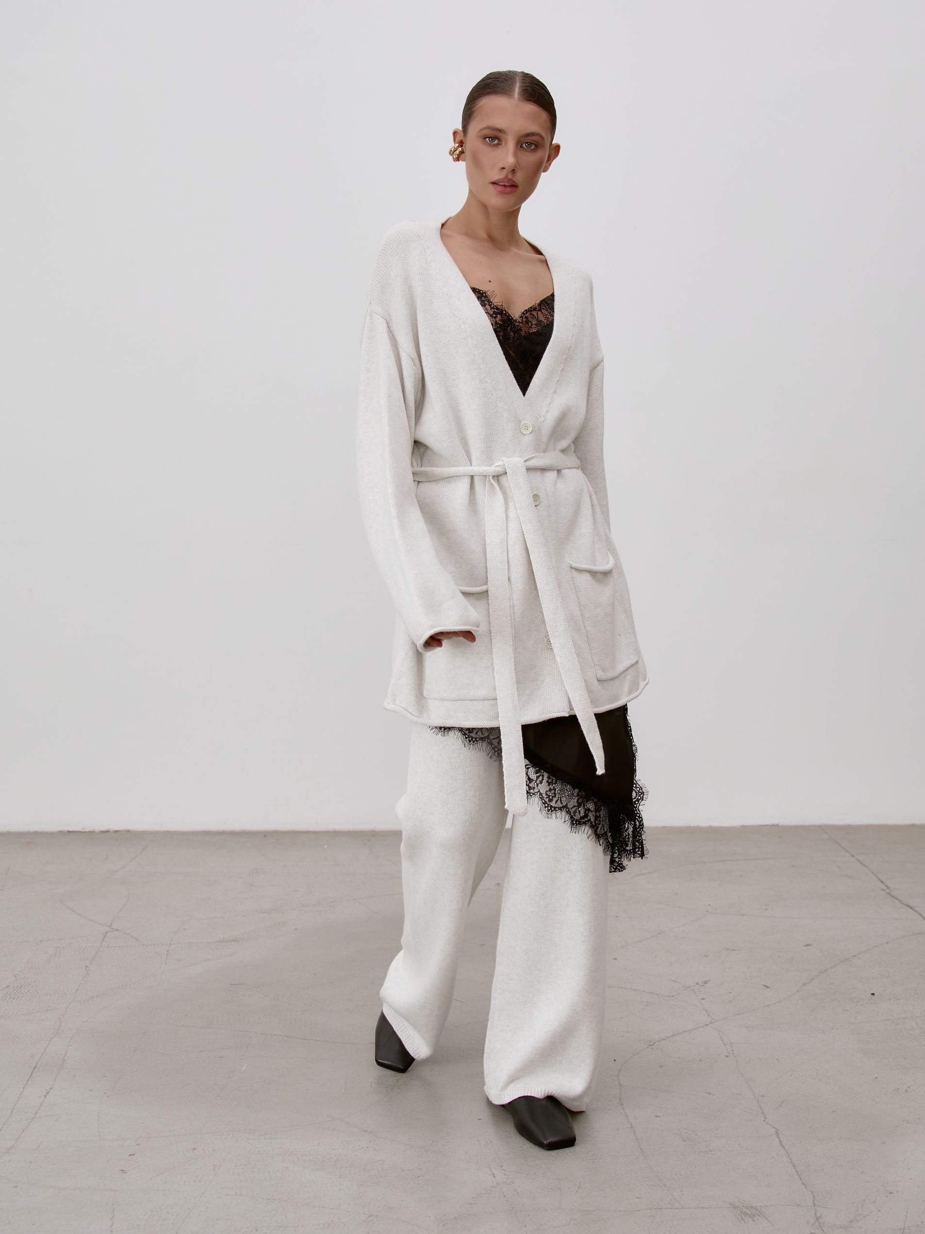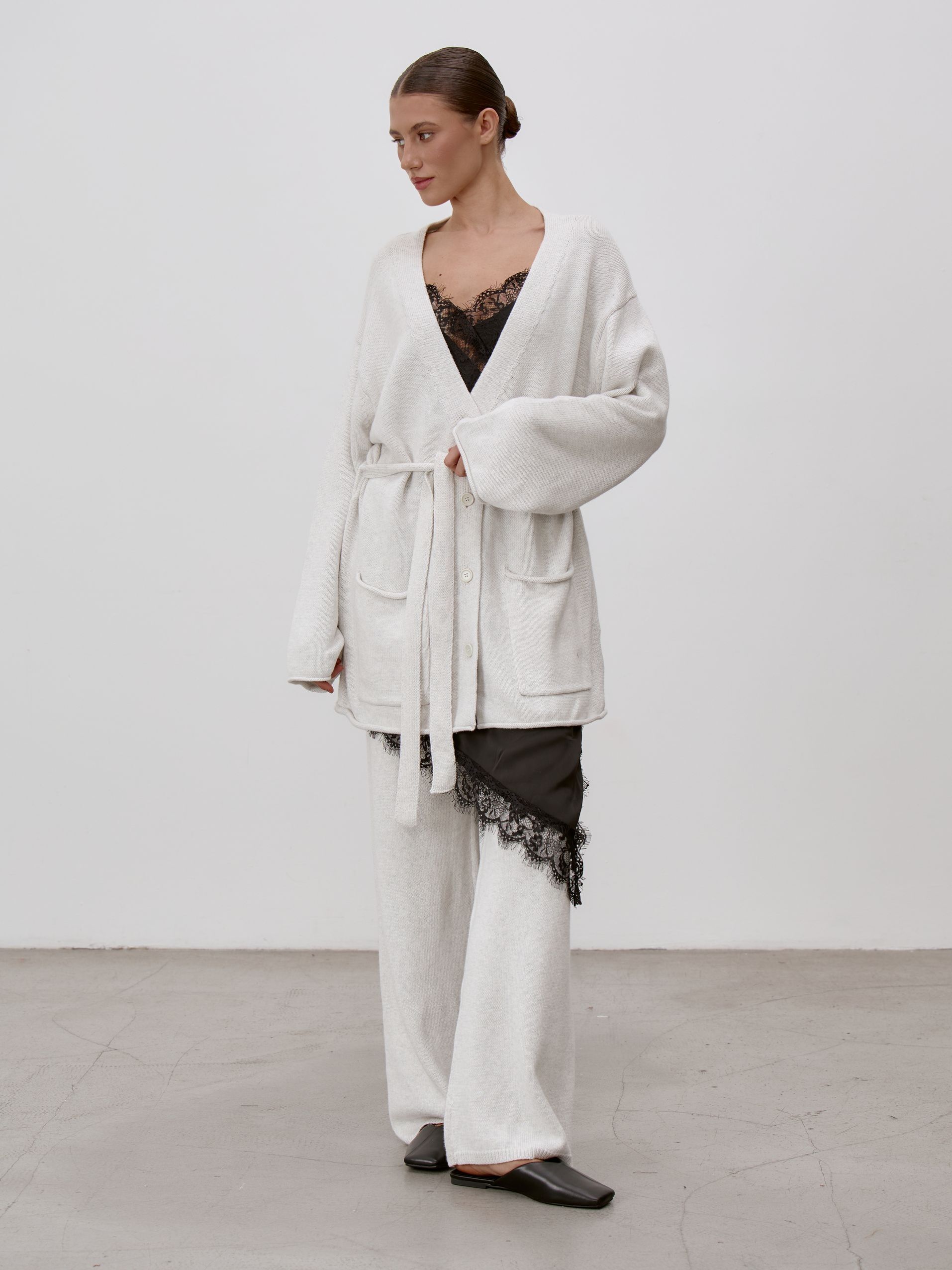 Страна: РоссияСостав: 95% хлопок 5% кашемирУход: ручная стирка при t° не более 30°Параметры модели: 83 / 62 / 90 , рост 172 (на модели размер S)