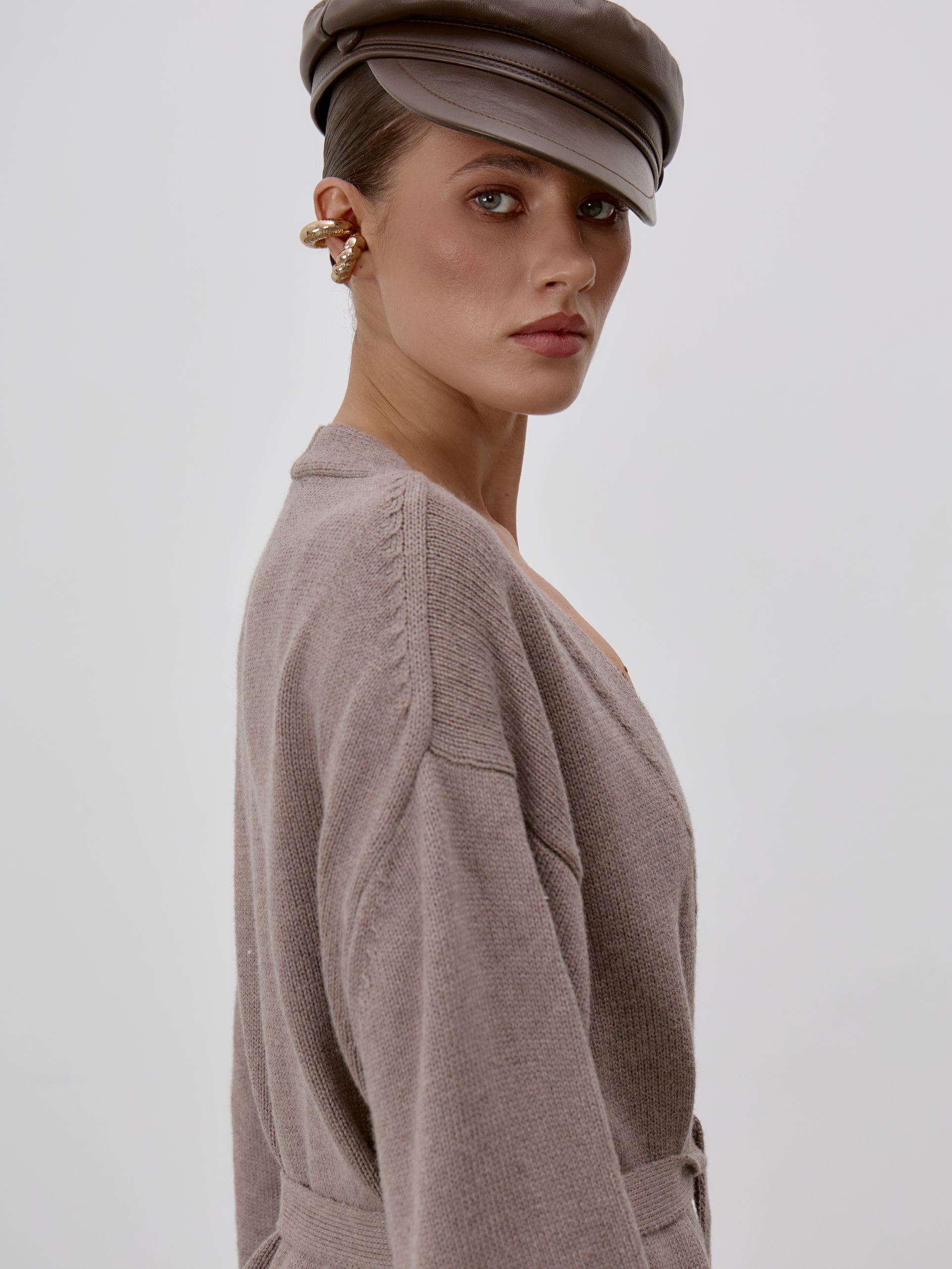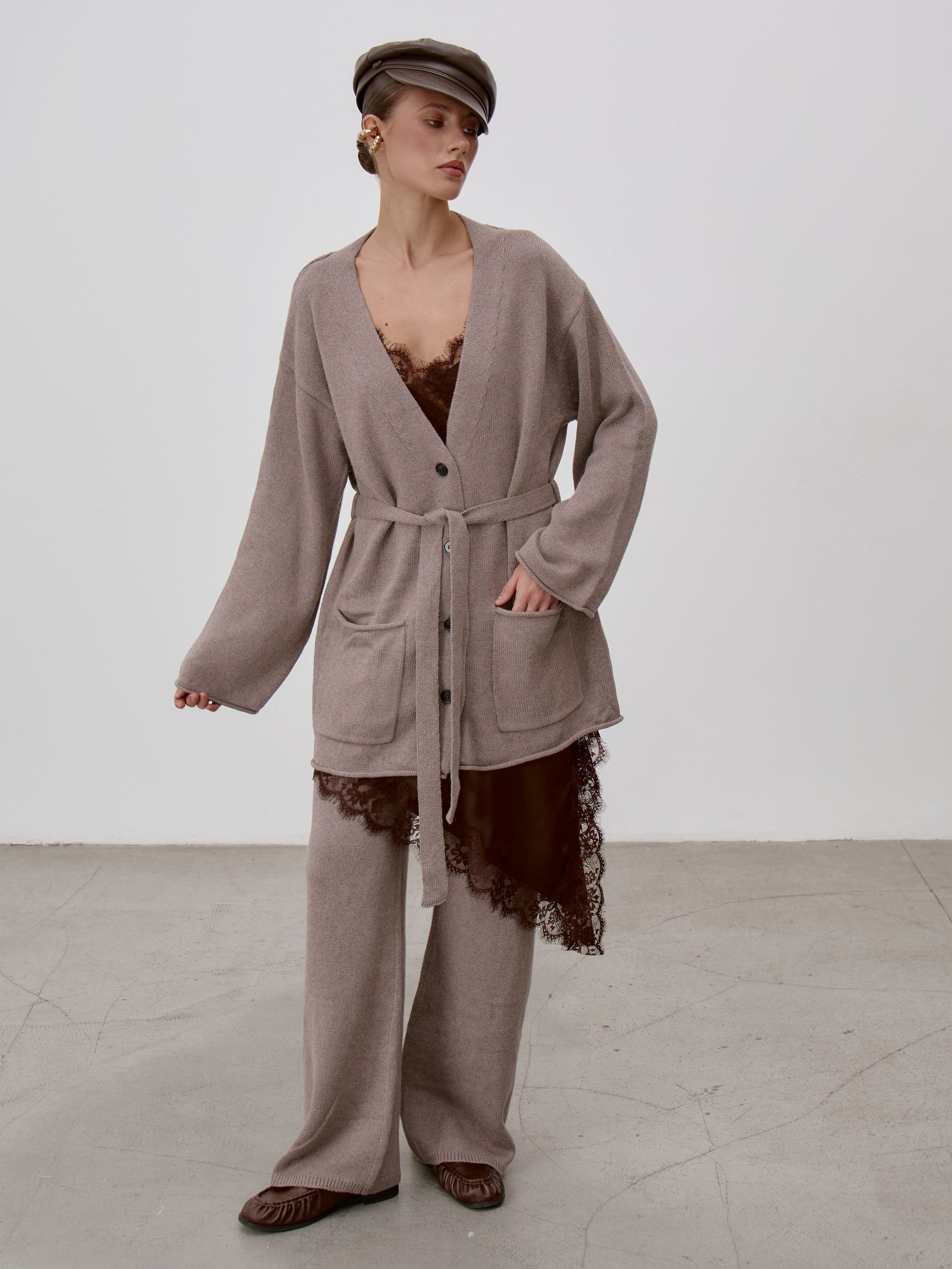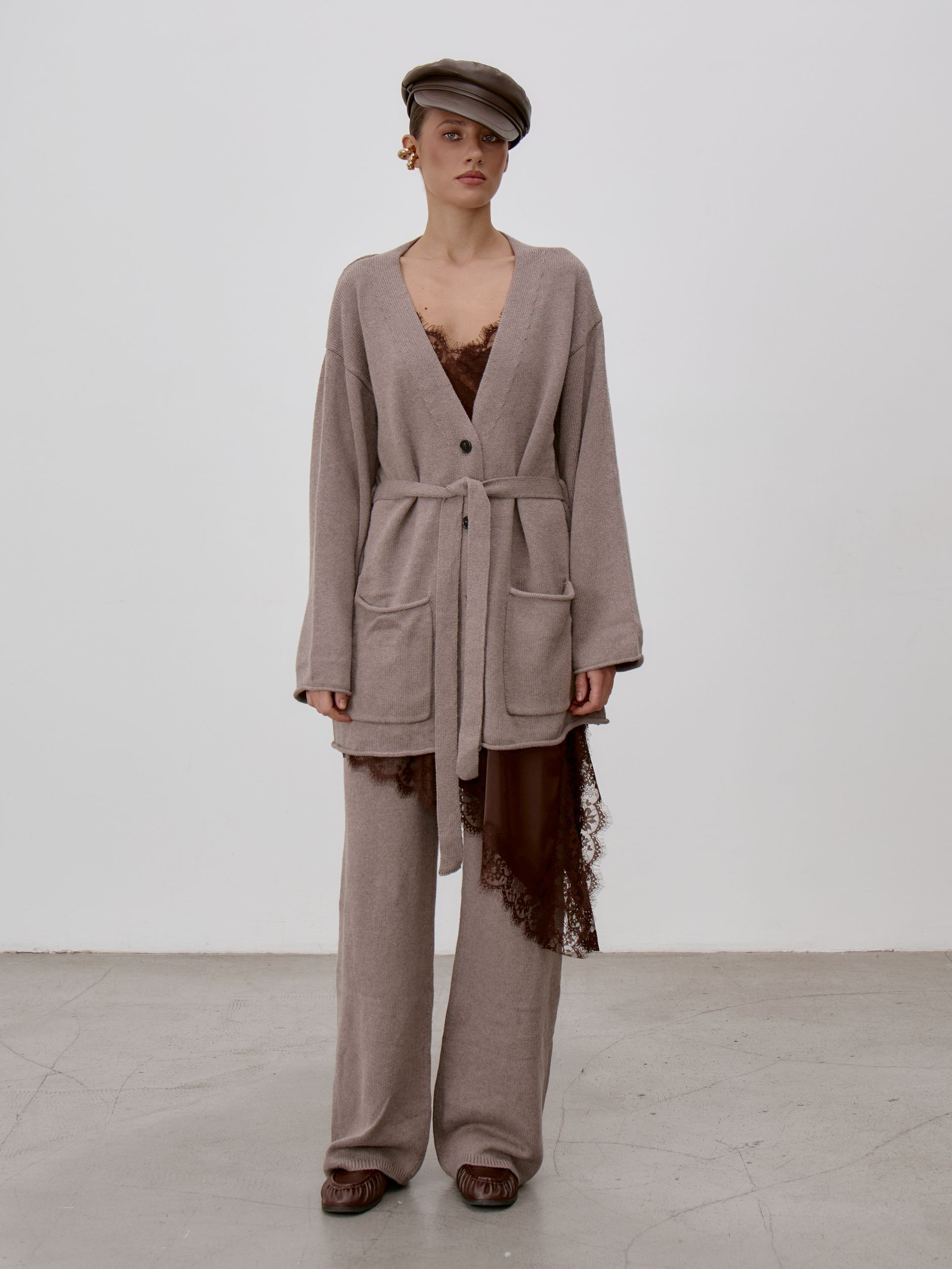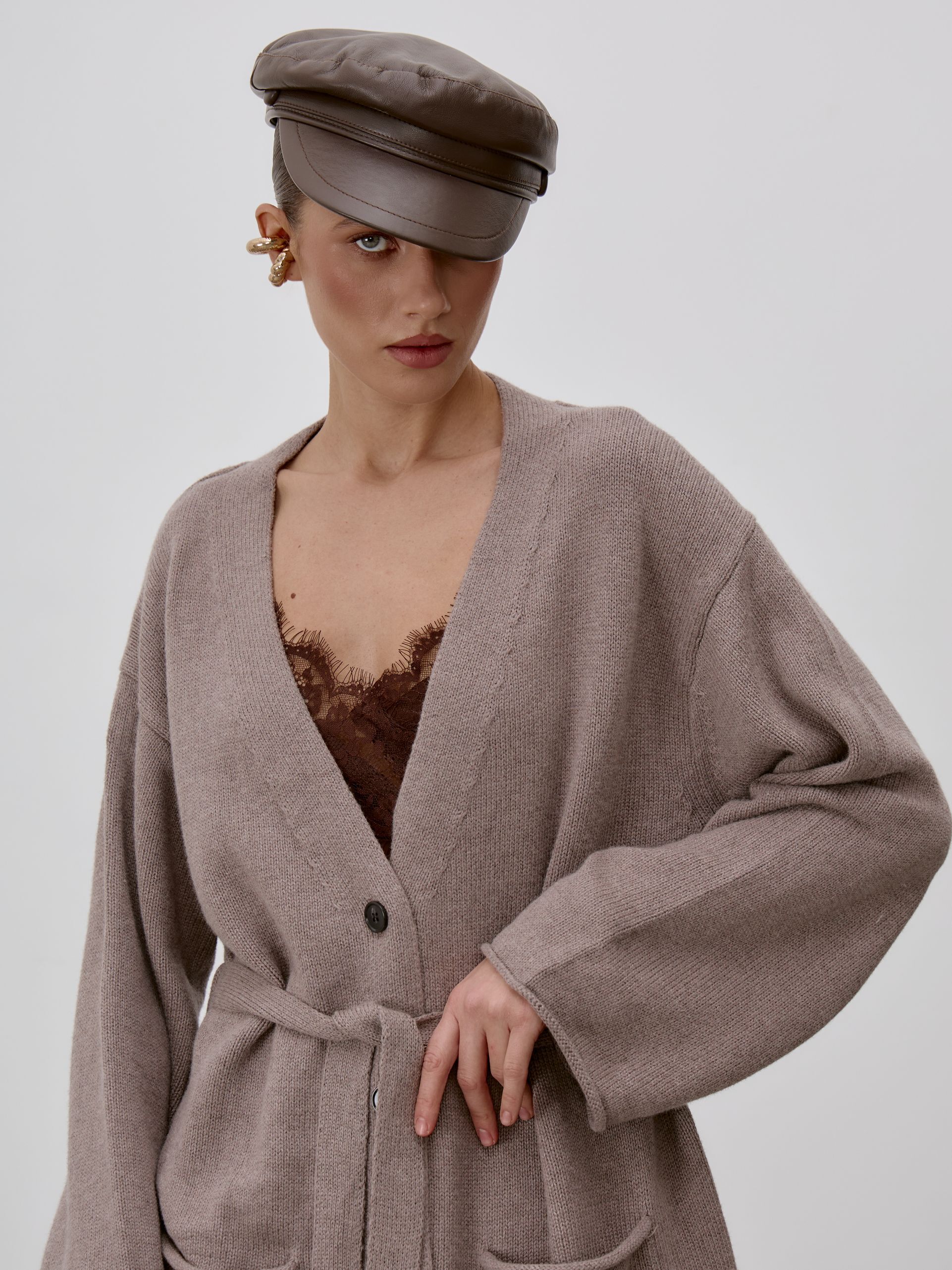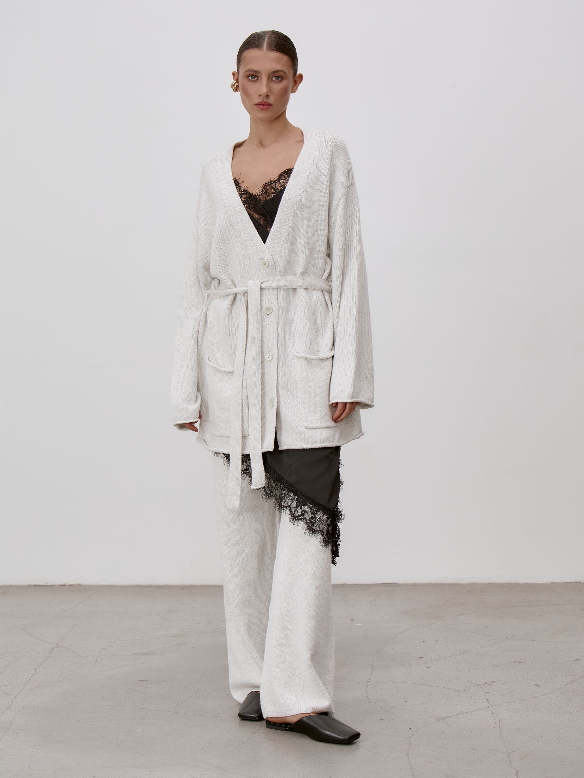 Страна: РоссияСостав: 95% хлопок 5% кашемирУход: ручная стирка при t° не более 30°Параметры модели: 83 / 62 / 90 , рост 172 (на модели размер S)