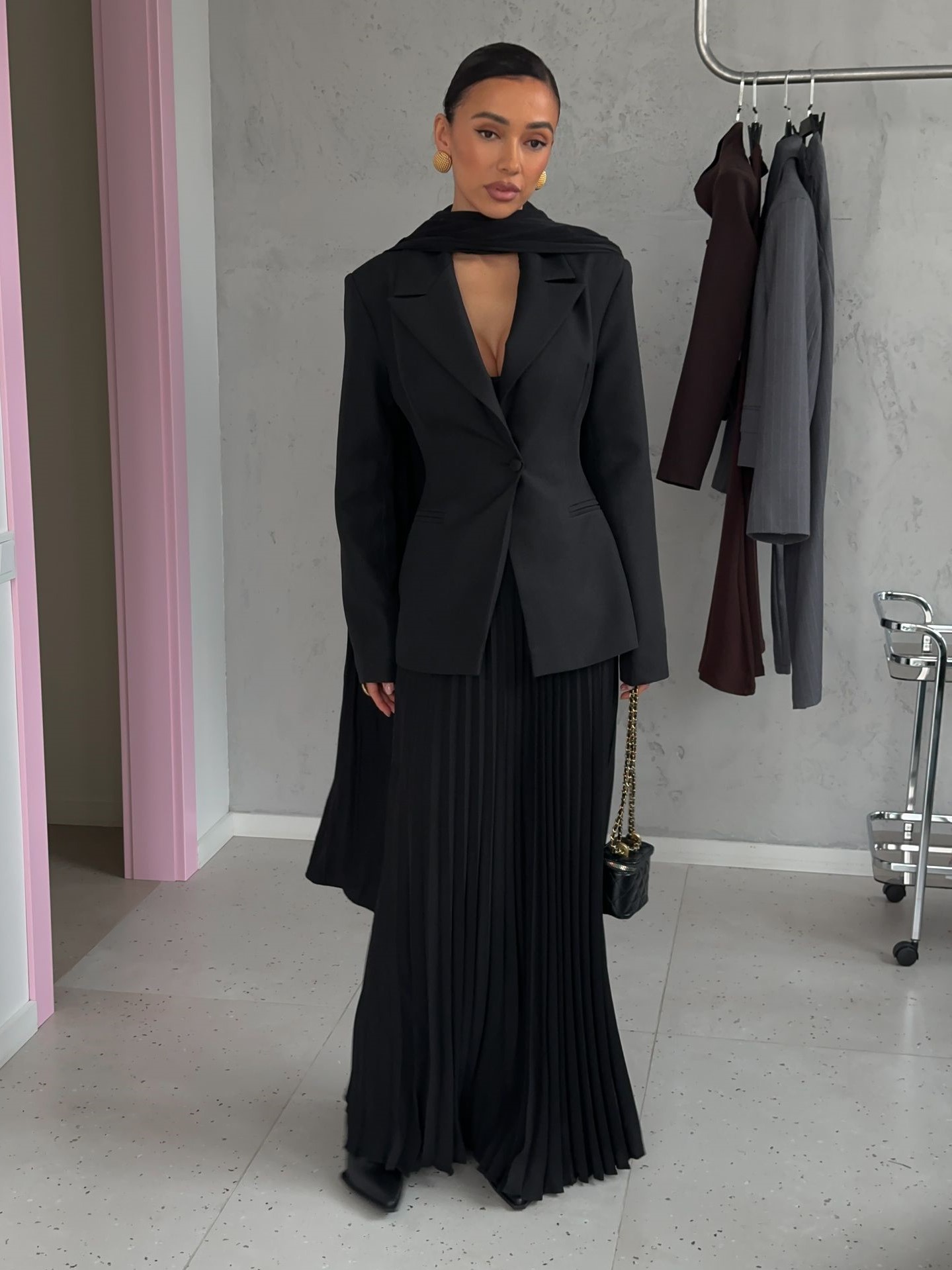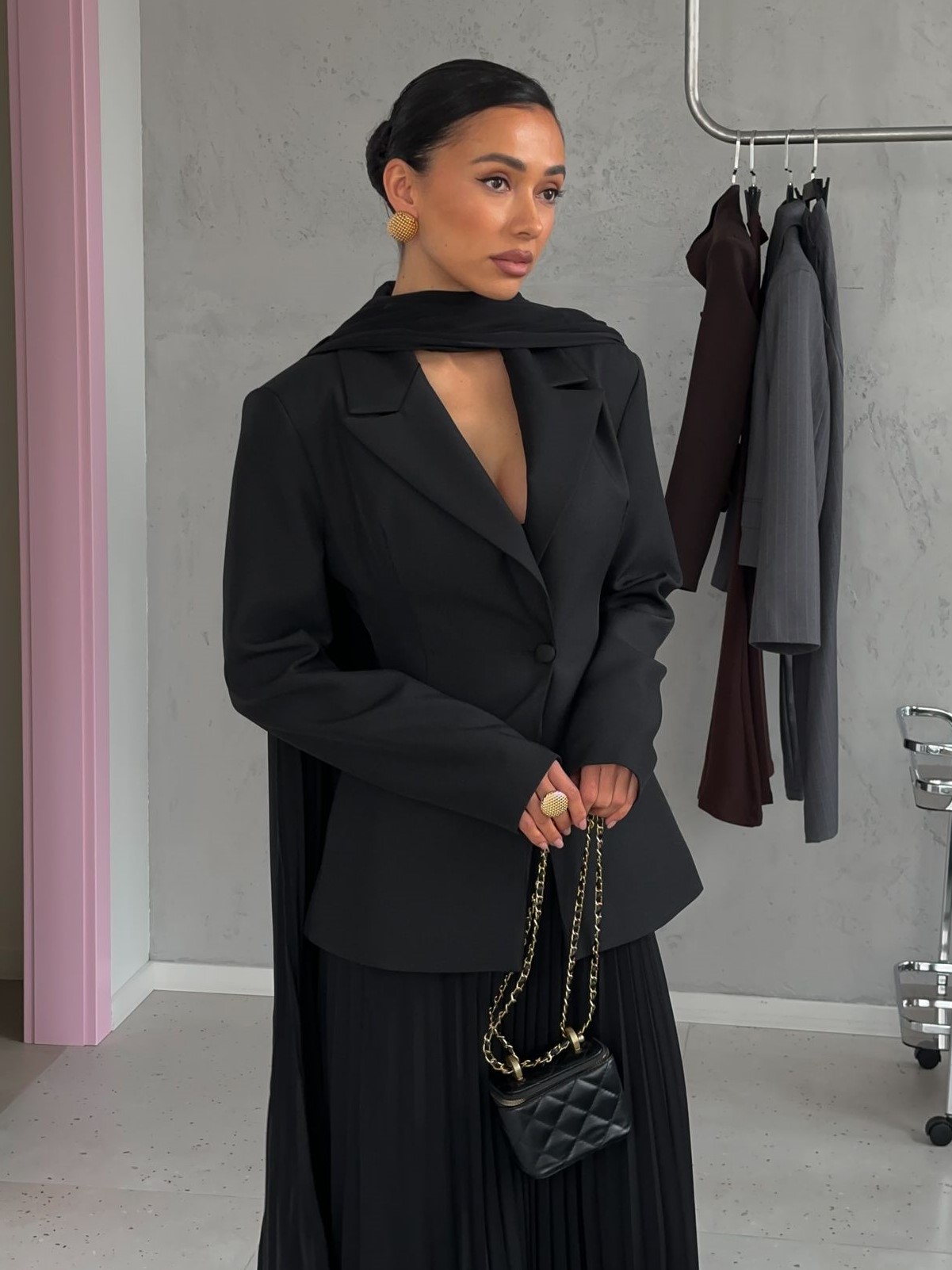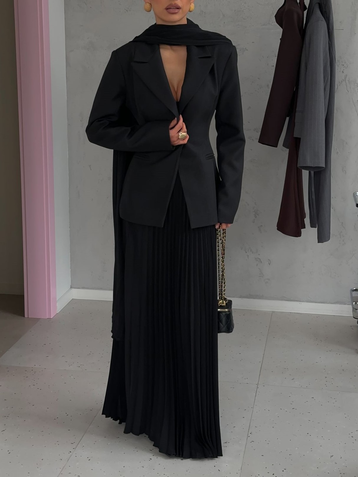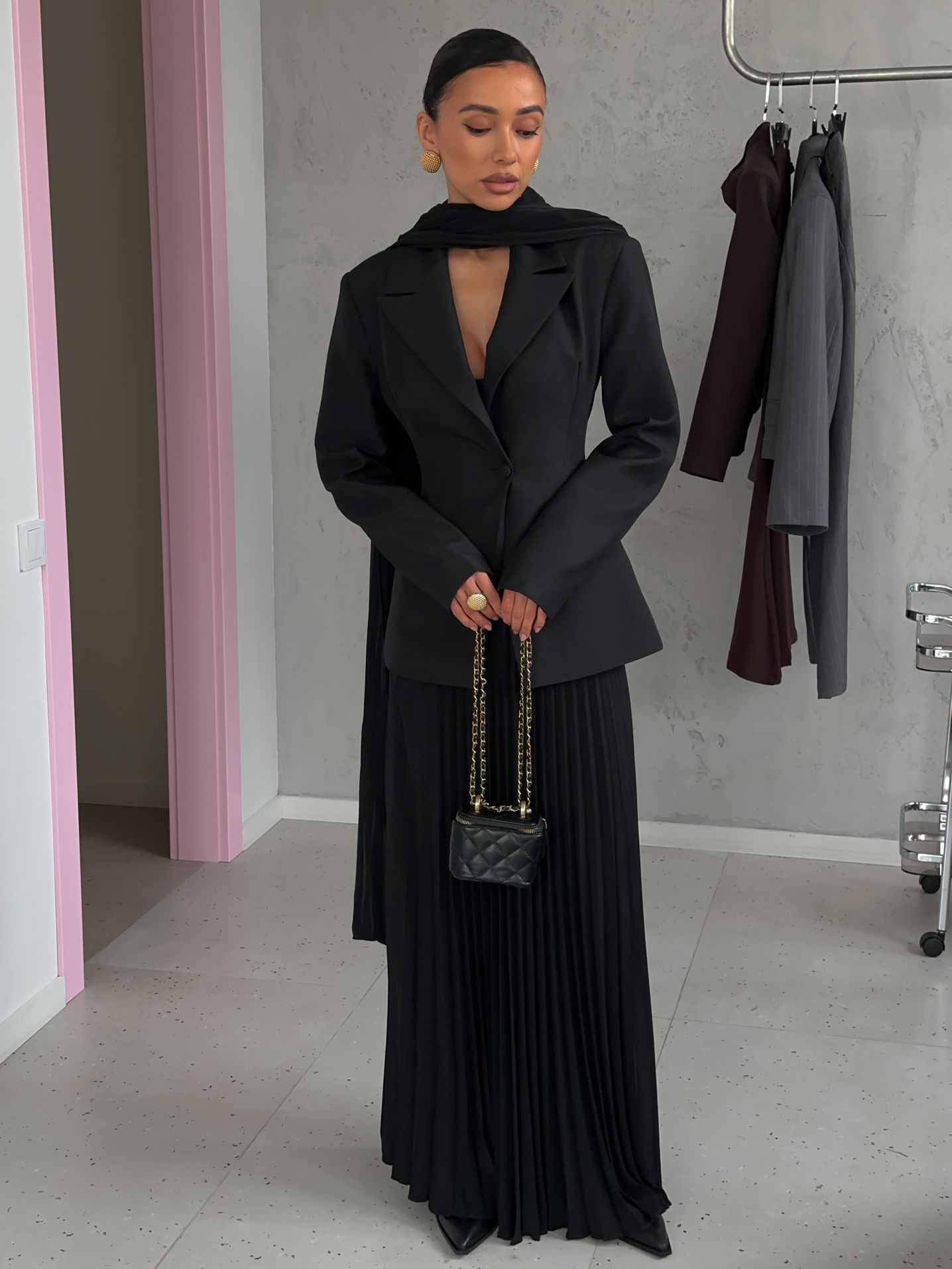 Страна: КитайСостав: 70% полиэстер 20% вискоза 10% хлопокУход: ручная стирка при t° не более 30°Параметры модели: 83 / 65 / 89 , рост 170 (на модели размер XS)
