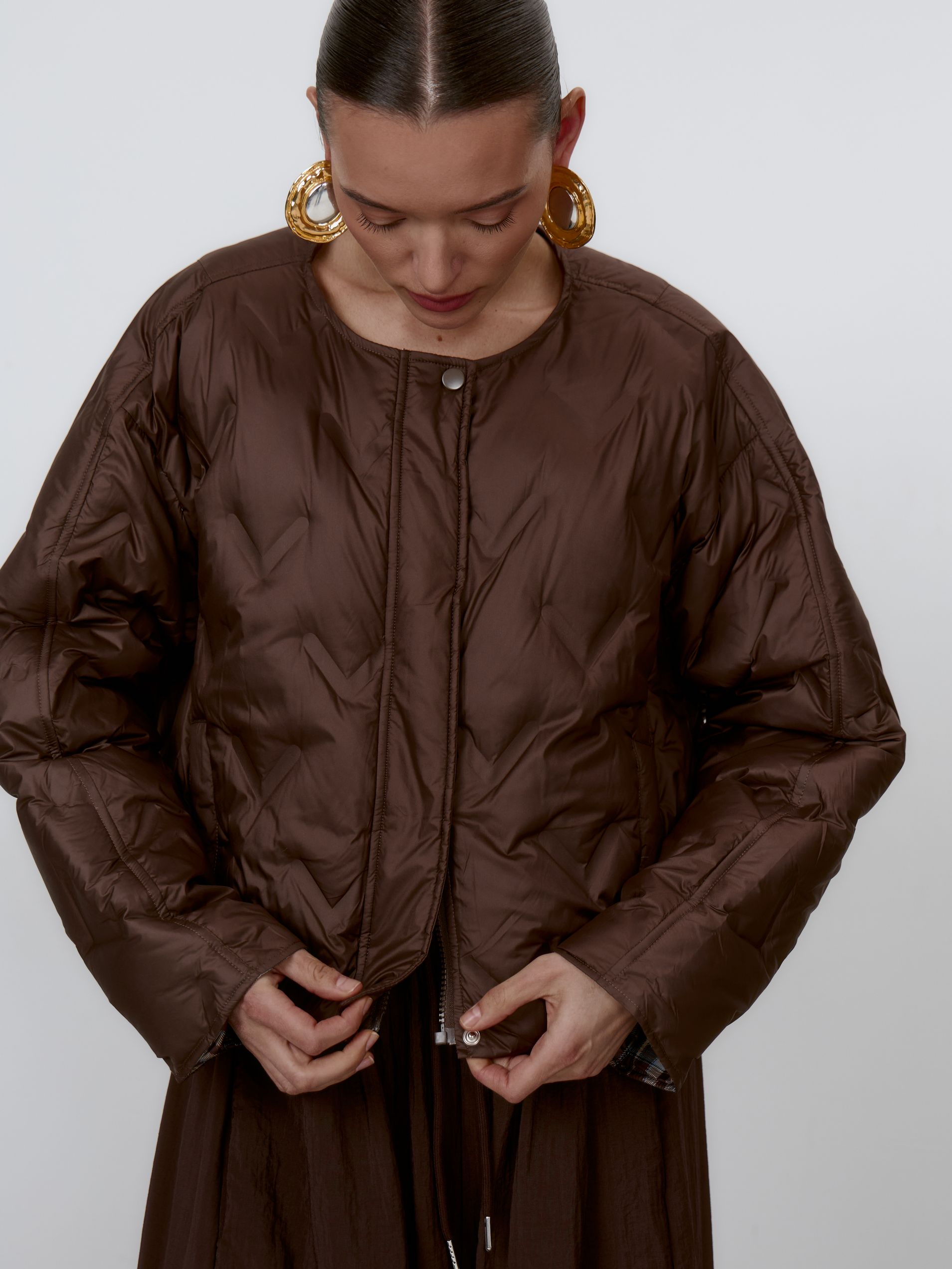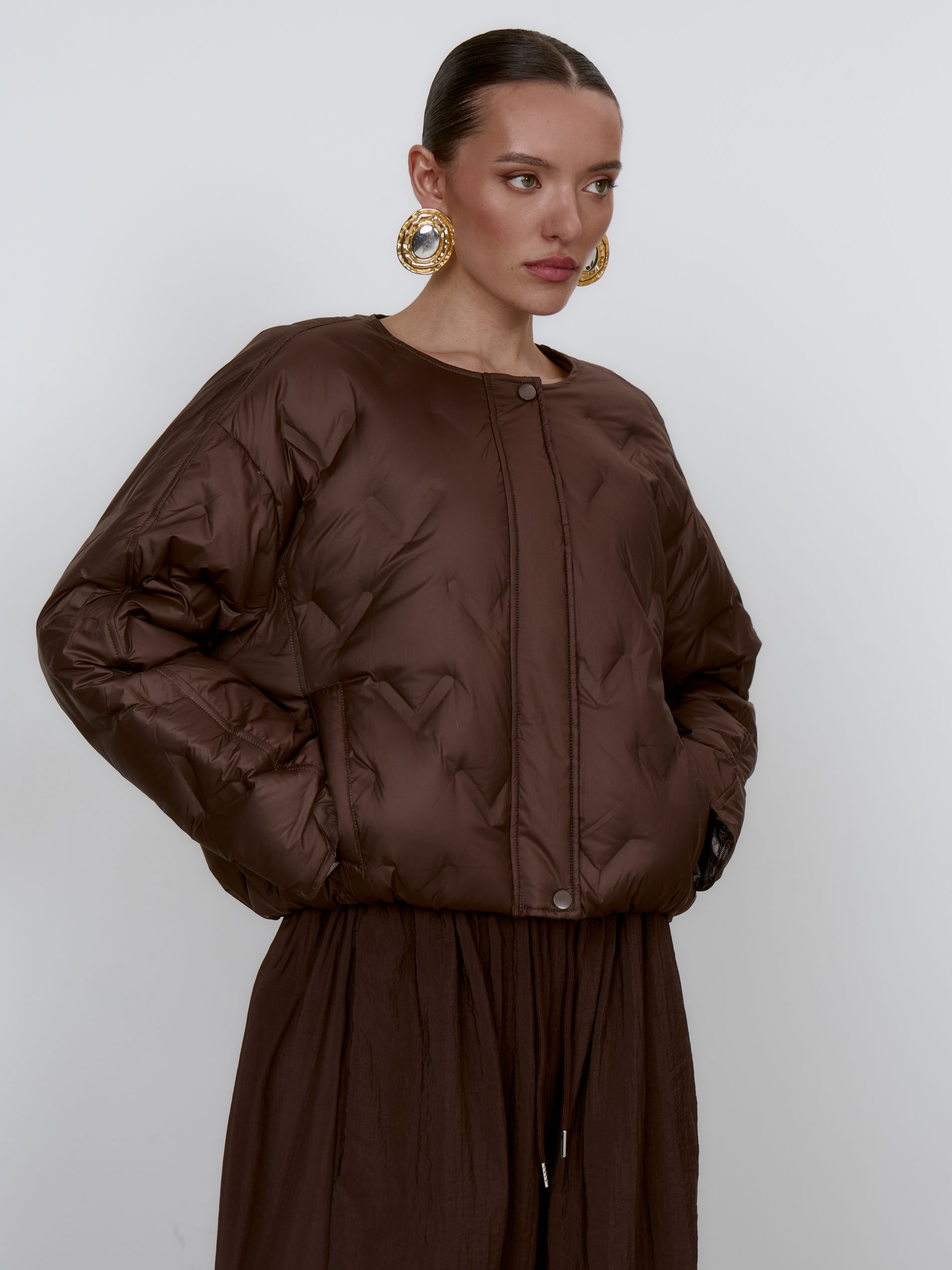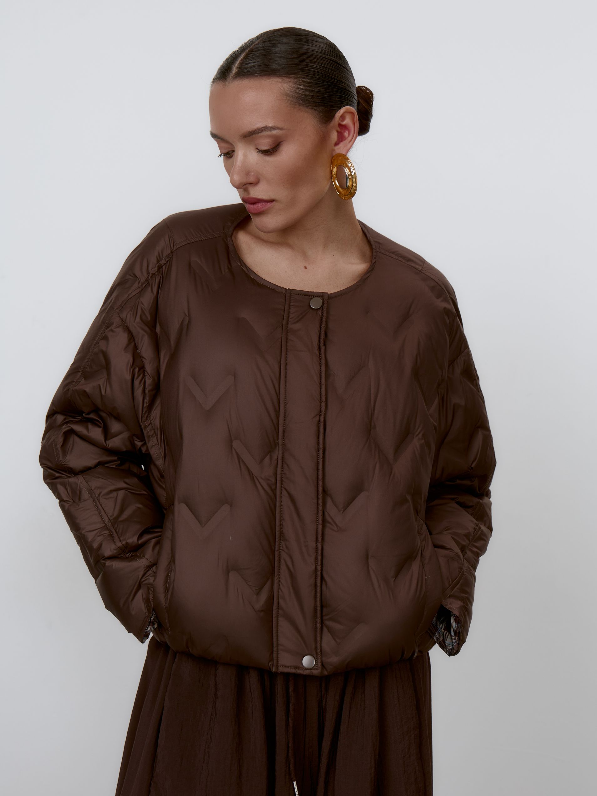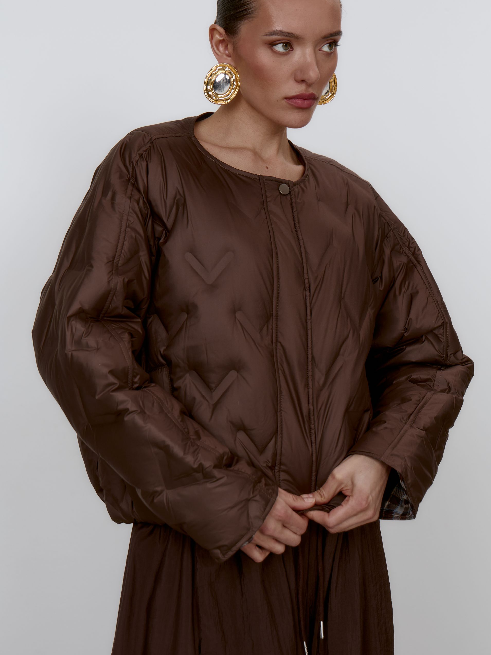 Страна: КитайСостав: 100% полиэстер; подклад: 90% натур.пух, 10% пероУход: ручная стирка при t° не более 30°Параметры модели: 83 / 63 / 90 , рост 172 (на модели размер XS)