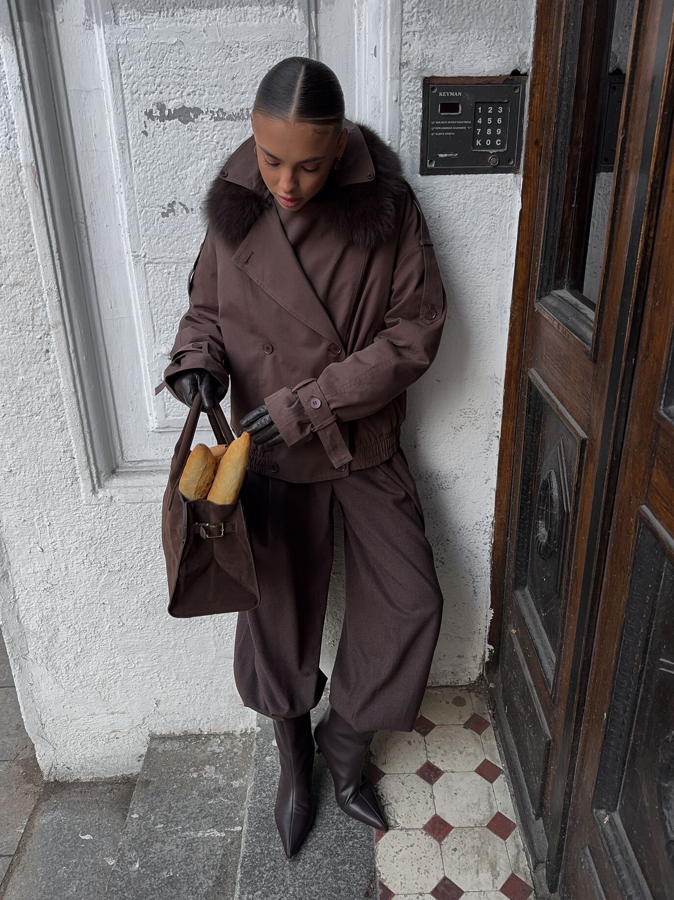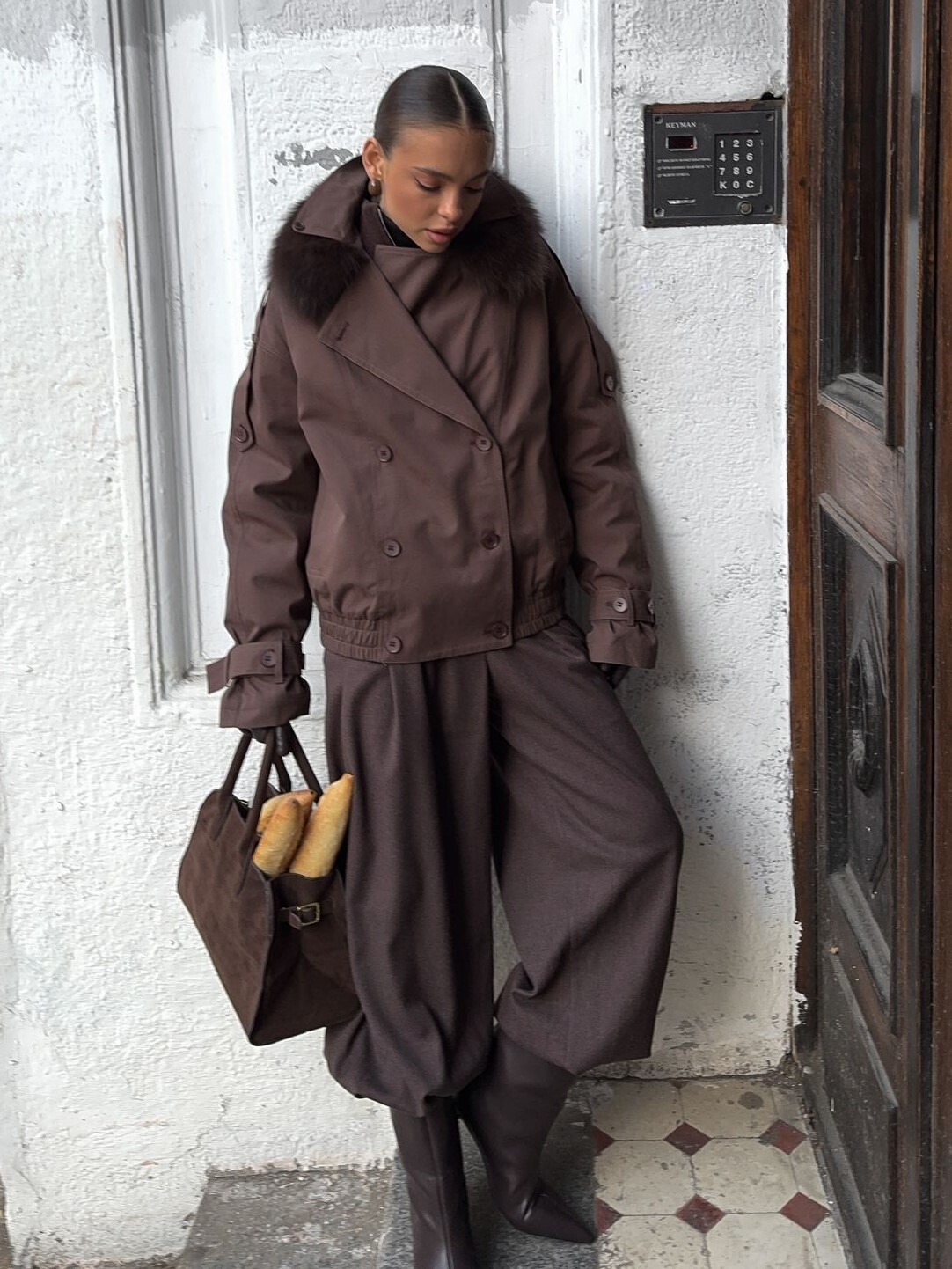 Страна: КитайСостав: 100% хлопокУход: ручная стирка при t° не более 30°Параметры модели: 80 / 60 / 80 , рост 169