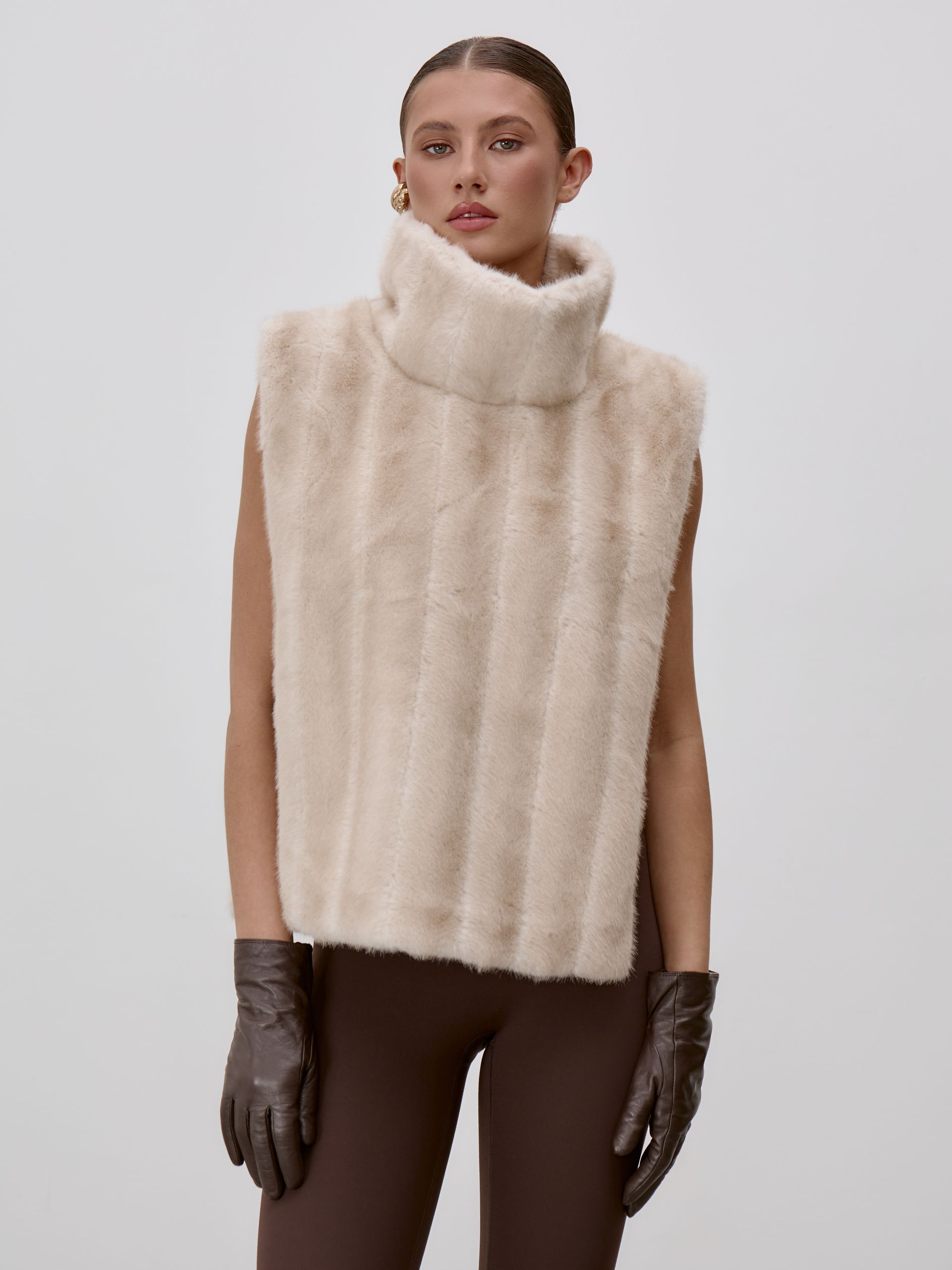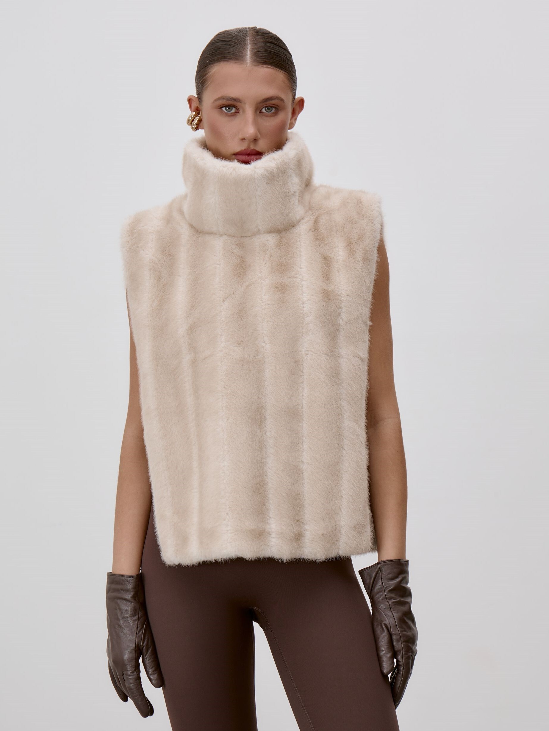 Страна: КитайСостав: 100% искусственный мехУход: ручная стирка при t° не более 30°Параметры модели: 83 / 62 / 90 , рост 172 (на модели размер XS)