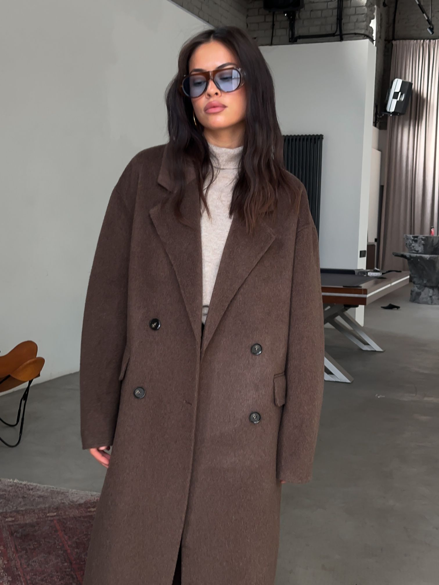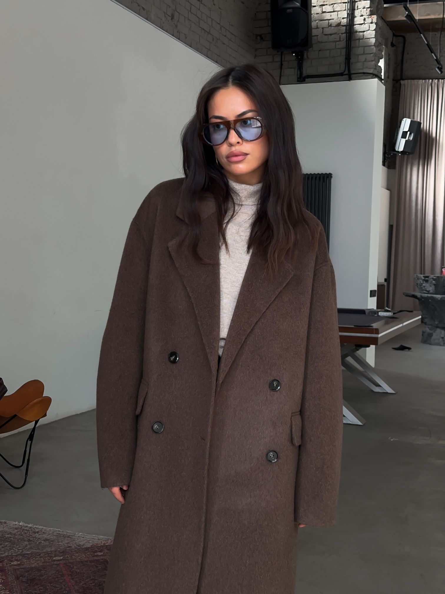 Страна: РоссияСостав: 100% шерстьУход: ручная стирка при t° не более 30°Параметры модели: 72 / 56 / 90 , рост 168
