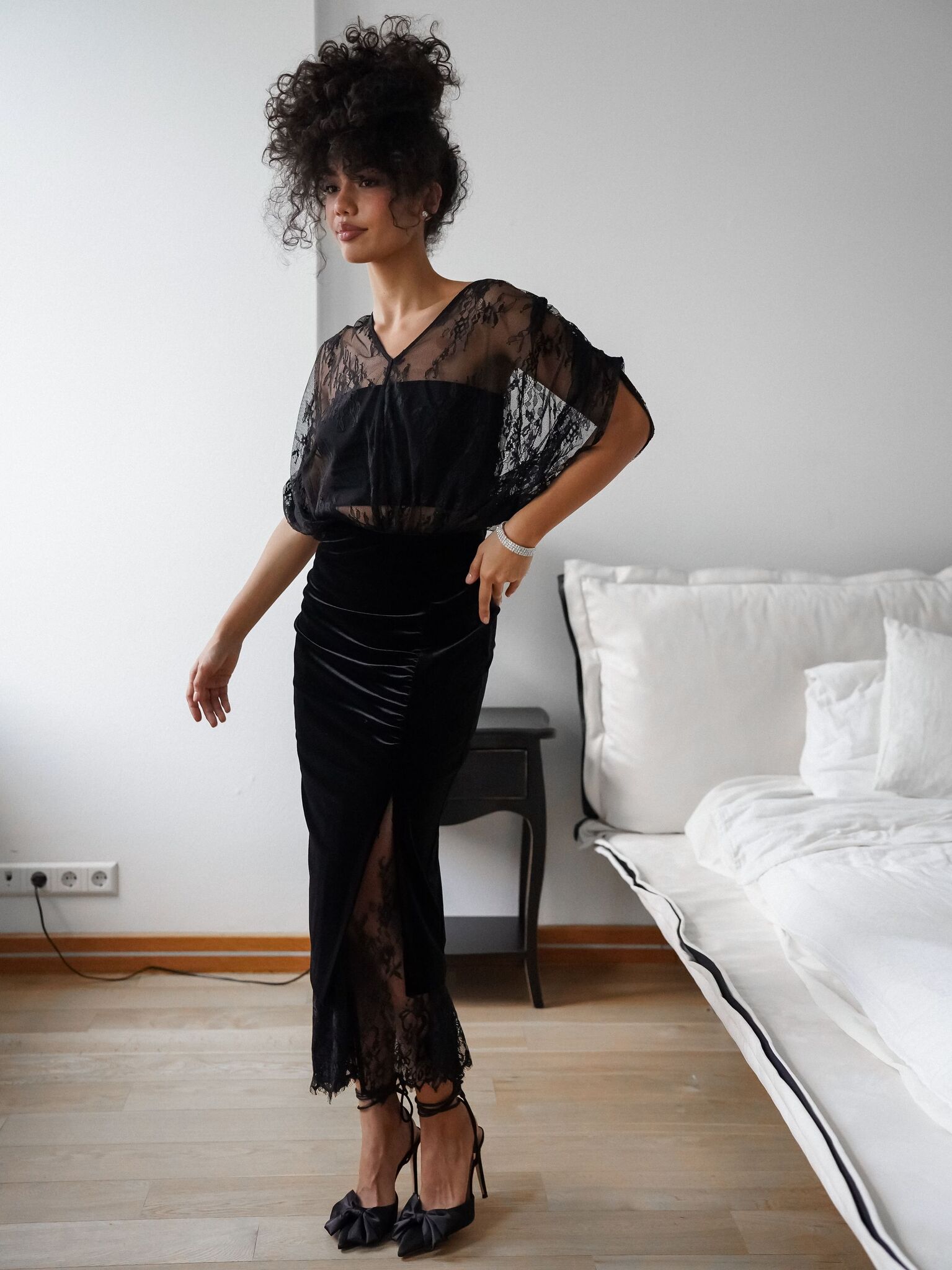 Страна: КитайСостав: 100% полиэстерУход: ручная стирка при t° не более 30°Параметры модели: 82 / 63 / 95 , рост 171